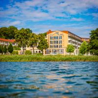 Unterkunft: 235 Nichtraucherzimmer, 4 Etagen. Alle Zimmer sind barrierefrei. Zimmer, die nicht in der Preistabelle aufgeführt sind, können auf Anfrage und gegen Gebühr gebucht werden. Einzelzimmer sind Doppelzimmer bzw. Suiten zur Alleinnutzung. Doppelzimmer Standard (2S, 1Q): Ca. 26 m², Dusche/ WC, TV, Telefon, Safe, teilweise Balkon. Suite 1 (2U, 1U): Ca. 42 m², Bad/ WC, TV, Telefon, Safe, Haartrockner, Radio, Wasserkocher, Sitzecke, Tageszeitung, zur Waldseite gelegen. Suite 2 (2T, 1T):Ca. 42 m², 2 Räume, sonst ausgestattet wie Suite 1. Suite 3 (2M, 1M): Ca. 37 m², zusätzlich Dusche/WC, mit Seeblick, sonst ausgestattet wie Suite 2.