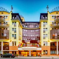 Hotelausstattung: Rezeption, Lobbybar, 2 Lifts, W-LAN, Restaurant, Café mit Terrasse, Therapieabteilung „Butterfly Spa Centre“ mit eigener SPA-Rezeption, modernes Erlebnisschwimmbad (ca. 12 x 6 m, 31°C), Whirlpool, finnische Sauna, Ruheliegen mit Infrarotlicht, Fitnessecke, Kreditkartenakzeptanz. Gegen Gebühr: Hauseigene Tiefgarage (ca. 10 €/ Tag, Reservierung erforderlich), kleine Hunde sind auf Anfrage erlaubt (ca. 18 €/ Tag).